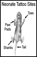 Le tatouage des nouveau-nés permet une identification permanente qui peut être utilisée pour identifier les animaux dès le premier jour de vie (P0).