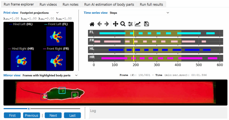Ces outils offrent des évaluations avec de nombreux paramètres dérivés à haute résolution, telles que la durée de la phase d’appui, la variabilité de la foulée et la coordination inter-membres, enregistrés dans des conditions de marche spontanées. Le principal défi actuel de l’analyse automatisée de la marche est l’identification correcte de chacune des  pattes afin de calculer tous les paramètres  d’intérêt automatiquement et sans intervention de l’opérateur.