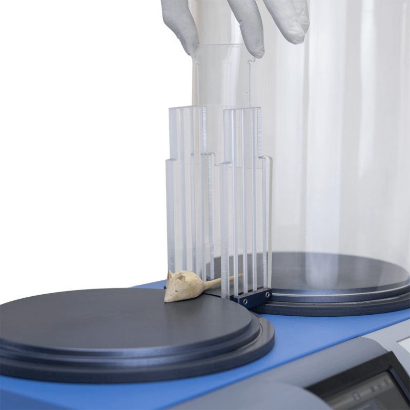 Ce test de nociception à deux températures peut être utilisé chez la souris ou le rat ( la différence résultant en un passage plus large pour les rats) pour mesurer les état de douleur évoqué. Il se compose d’une plaque réglable au chaud et au Froid et d’une plaque réglable au chaud. Les deux instruments sont reliés par un couloir adapté à la taille de l’animal qui sert de place neutre au début du test. Ce test se déroule sans intervention de l’opérateur et n’est pas sujet à interprétation, ce qui représente un grand avantage par rapport à la plaque chaud/froid simple, et le point final à mesurer est beaucoup plus objectif. La lecture est cependant plus longue car l’animal prend le temps d’explorer les deux compartiments.